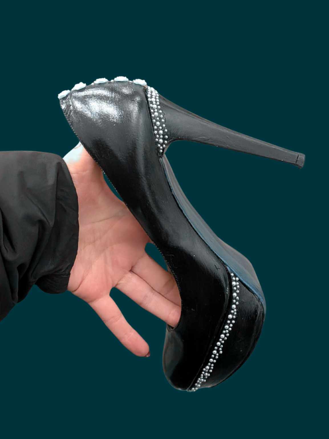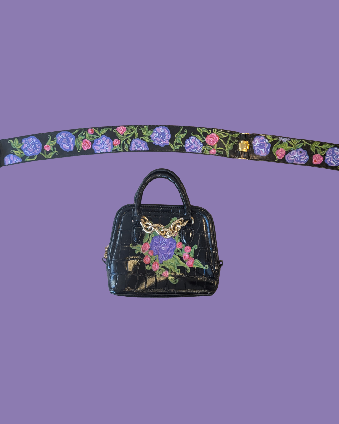 I particularly enjoy painting on vintage apparel, such as handbags, luggage, belts and shoes.